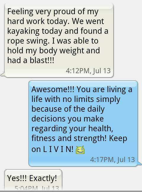 Since working with Todd I have become the woman I am meant to be. I am strong, (more) stubborn and I can stand up for myself because I know my worth. Yes, these are not physical things that I have gained, and that makes it even more worth it to me. I can see progress within myself, not just my body and that makes this whole difficult journey worth it.
