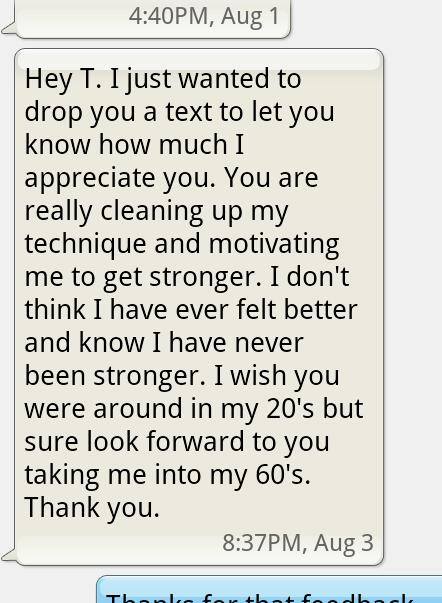I was recommended to meet with Todd at Old School Strength. I was nervous to work with a male trainer; or with ANYONE who was paying THAT close attention to my “fat-ness”. But after meeting him, he put me at ease immediately.